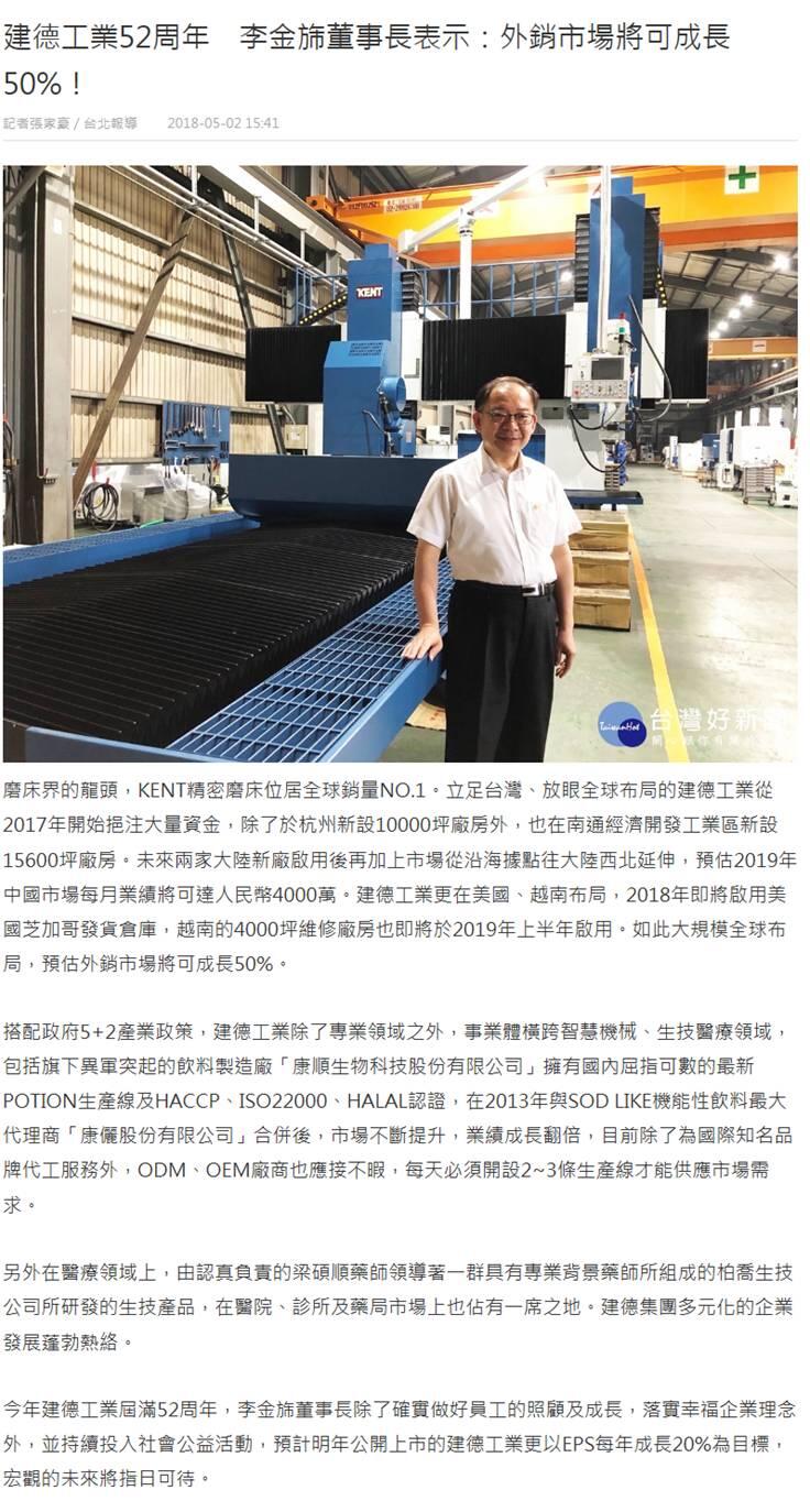 建德工業(yè)52周年 李金旆董事長(zhǎng)表示:外銷(xiāo)市場(chǎng)可增長(zhǎng)50%